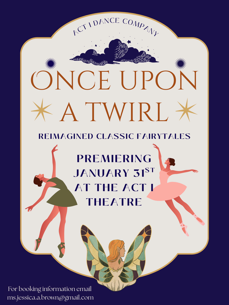 Presented by our resident professional dance company, ACT I Dance Company, we invite you to join us for a magical event! Once Upon a Twirl is a vibrant, family-friendly dance production inspired by beloved classic fairy tales—reimagined with playful twists, whimsical themes, and plenty of heart. Designed especially for younger audiences, the show features dynamic choreography, colorful costumes and sets, and exciting moments of audience participation. Audience members will have the chance to influence the storyline, assist with props, and immerse themselves in a world where imagination takes center stage.