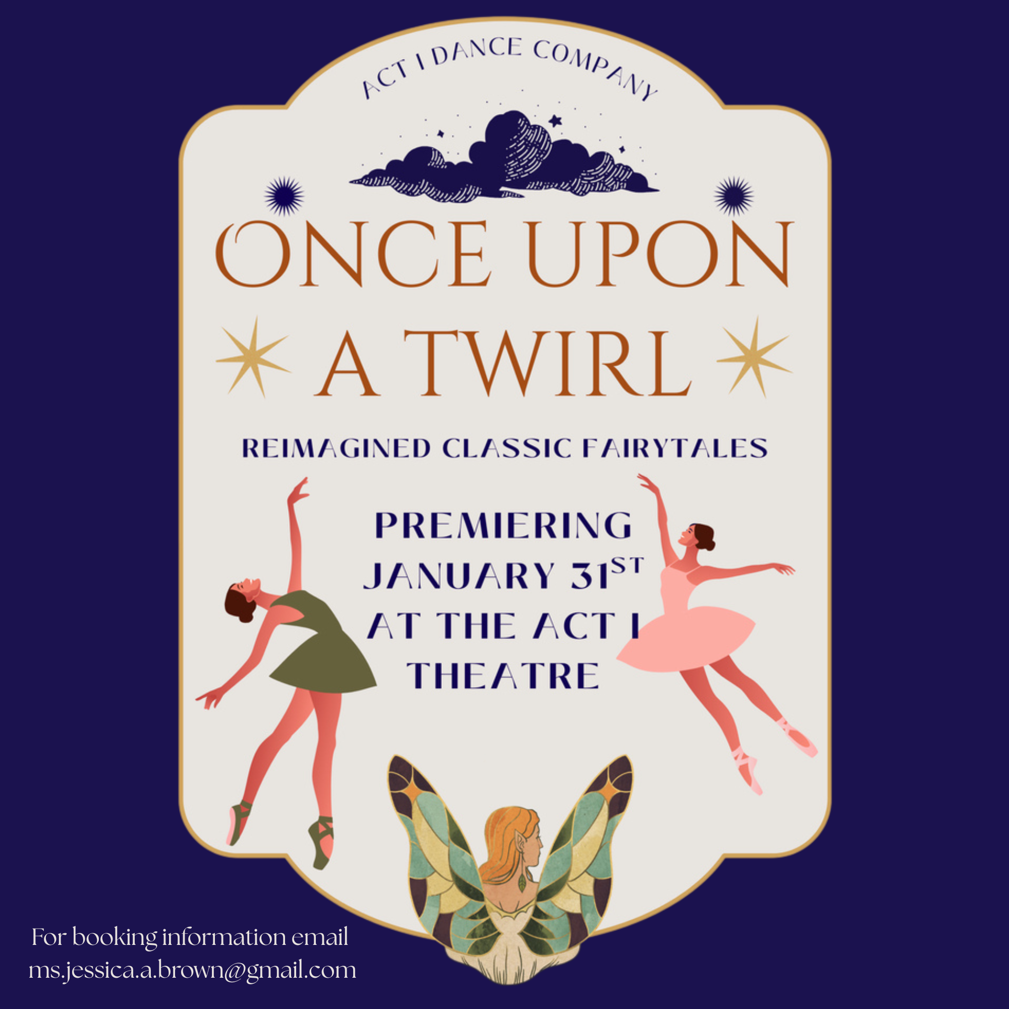 Presented by our resident professional dance company, ACT I Dance Company, we invite you to join us for a magical event! Once Upon a Twirl is a vibrant, family-friendly dance production inspired by beloved classic fairy tales—reimagined with playful twists, whimsical themes, and plenty of heart. Designed especially for younger audiences, the show features dynamic choreography, colorful costumes and sets, and exciting moments of audience participation. Audience members will have the chance to influence the storyline, assist with props, and immerse themselves in a world where imagination takes center stage.